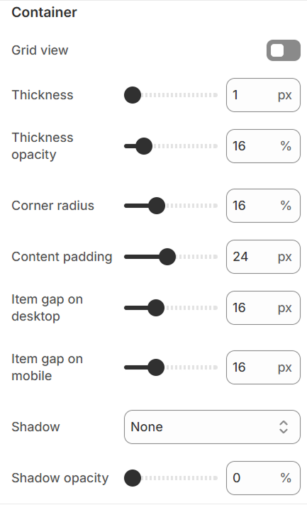 * **Shadow:** Adds a shadow effect to the container.