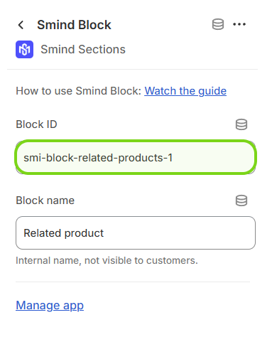 Step 3: Copy the block ID. For example: smi-block-related-products-1