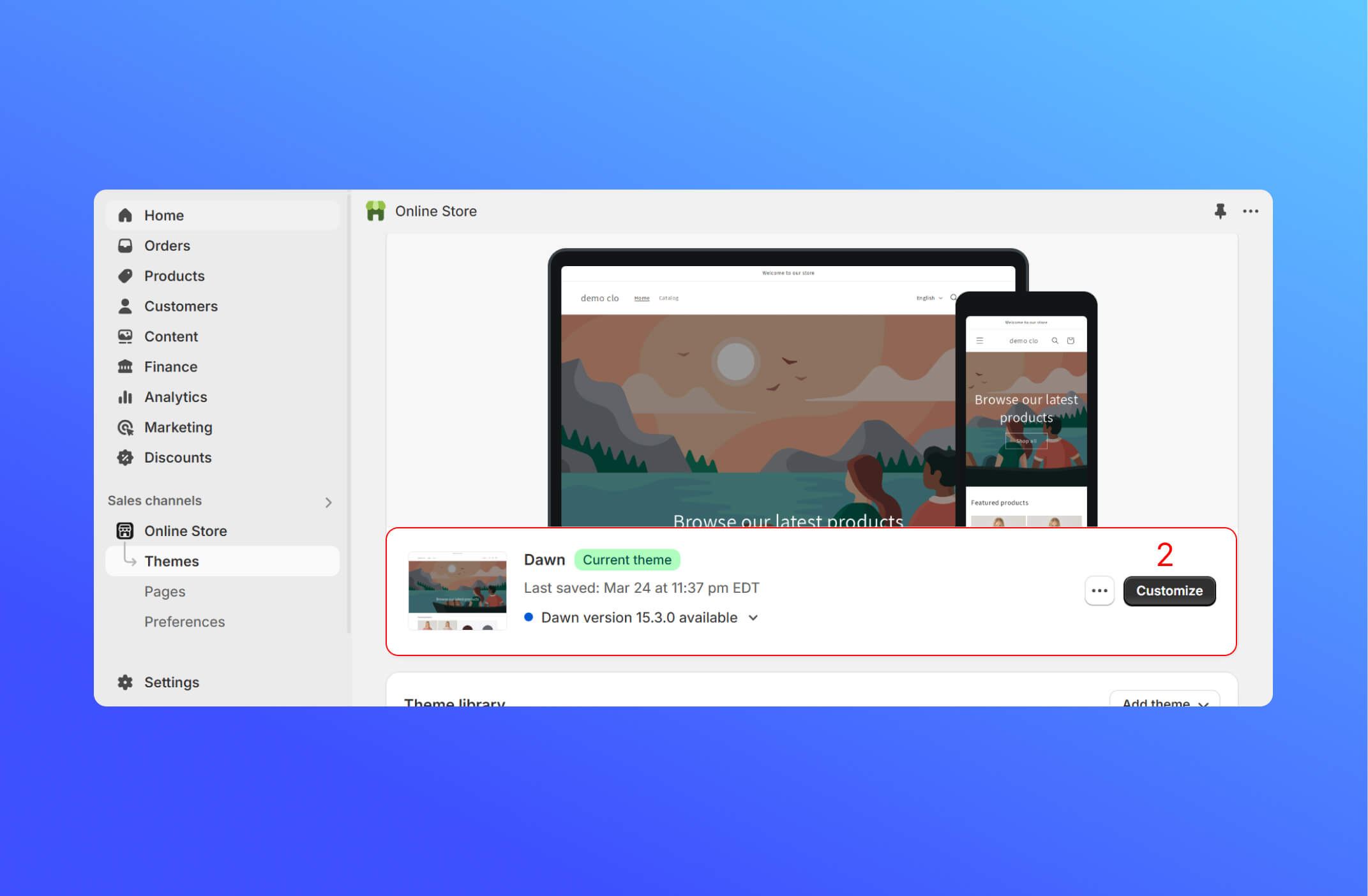 * Open Shopify → **Online Store → Themes → Customize.**