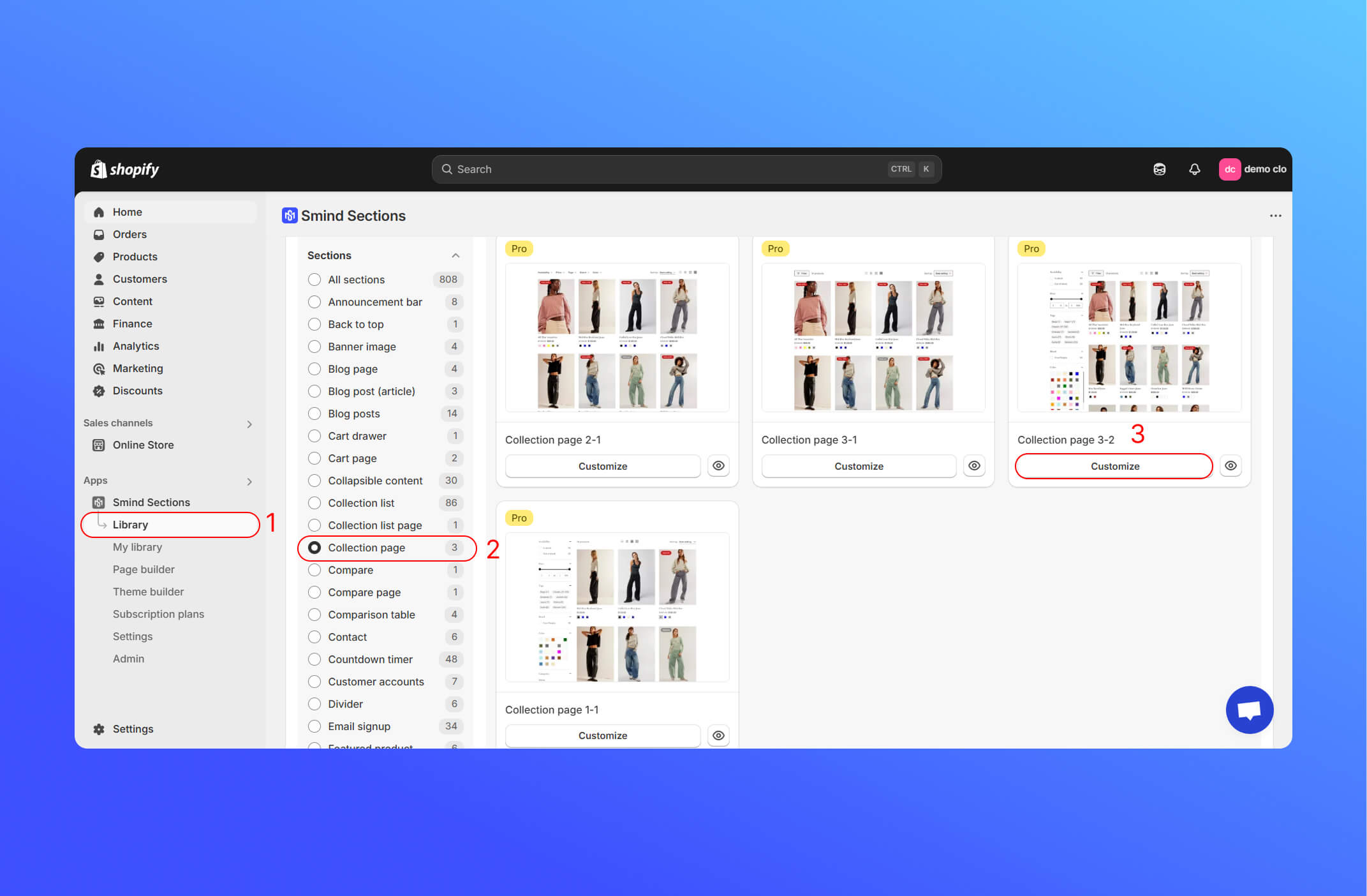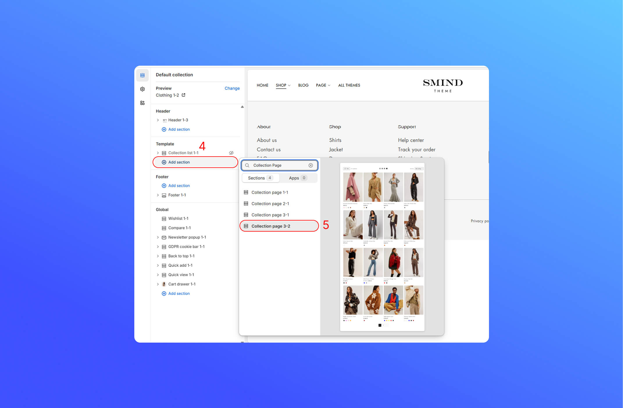 2. In the **Sections** tab, search for the keyword **Collection Page 3-2**