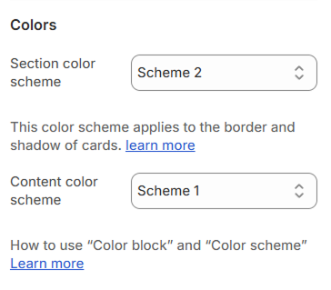 * **Section color scheme**: This color scheme applies to the border and shadow of the content cards within the section.