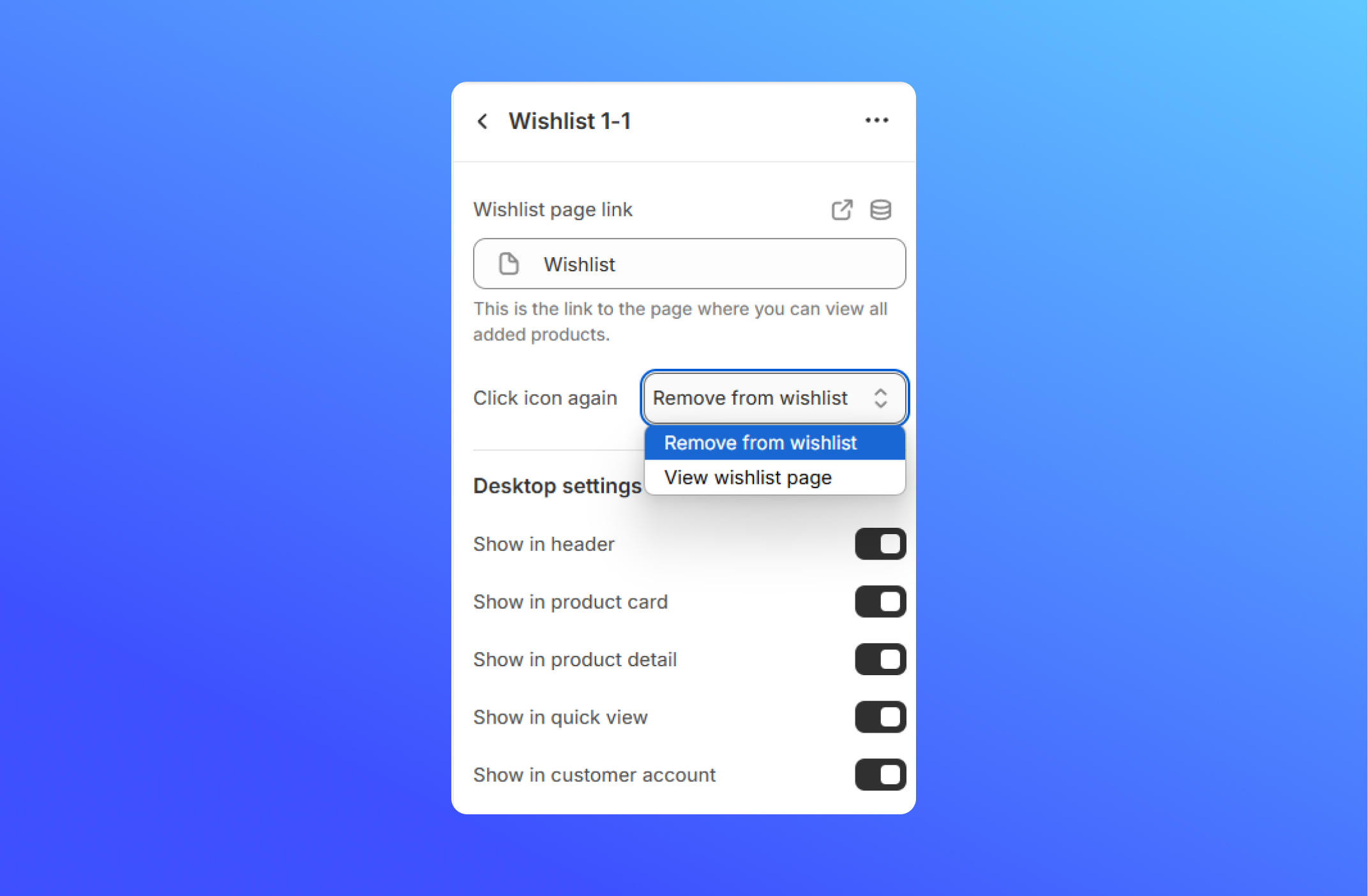 The **wishlist** can be displayed on both desktop and mobile in the following locations.