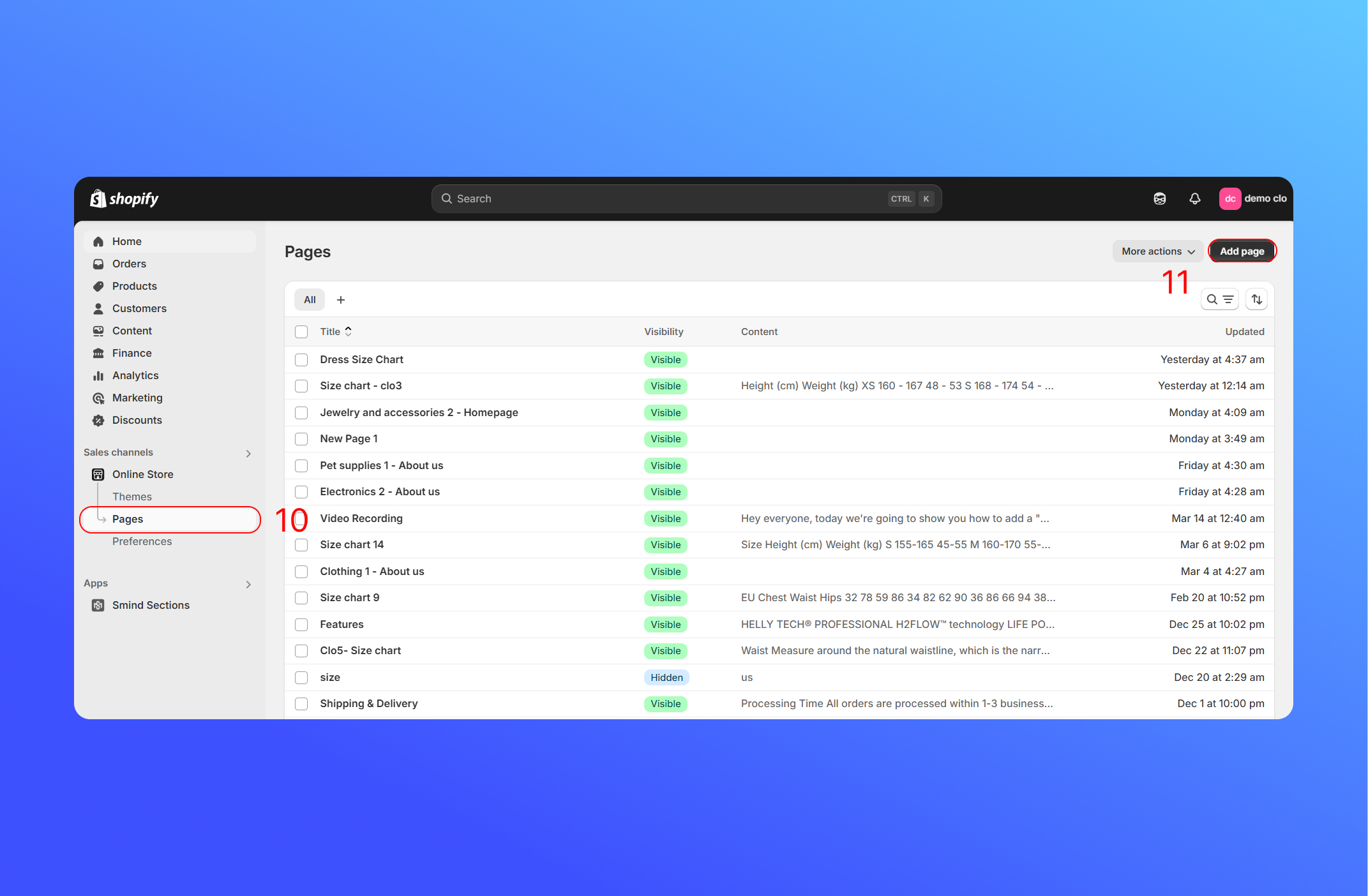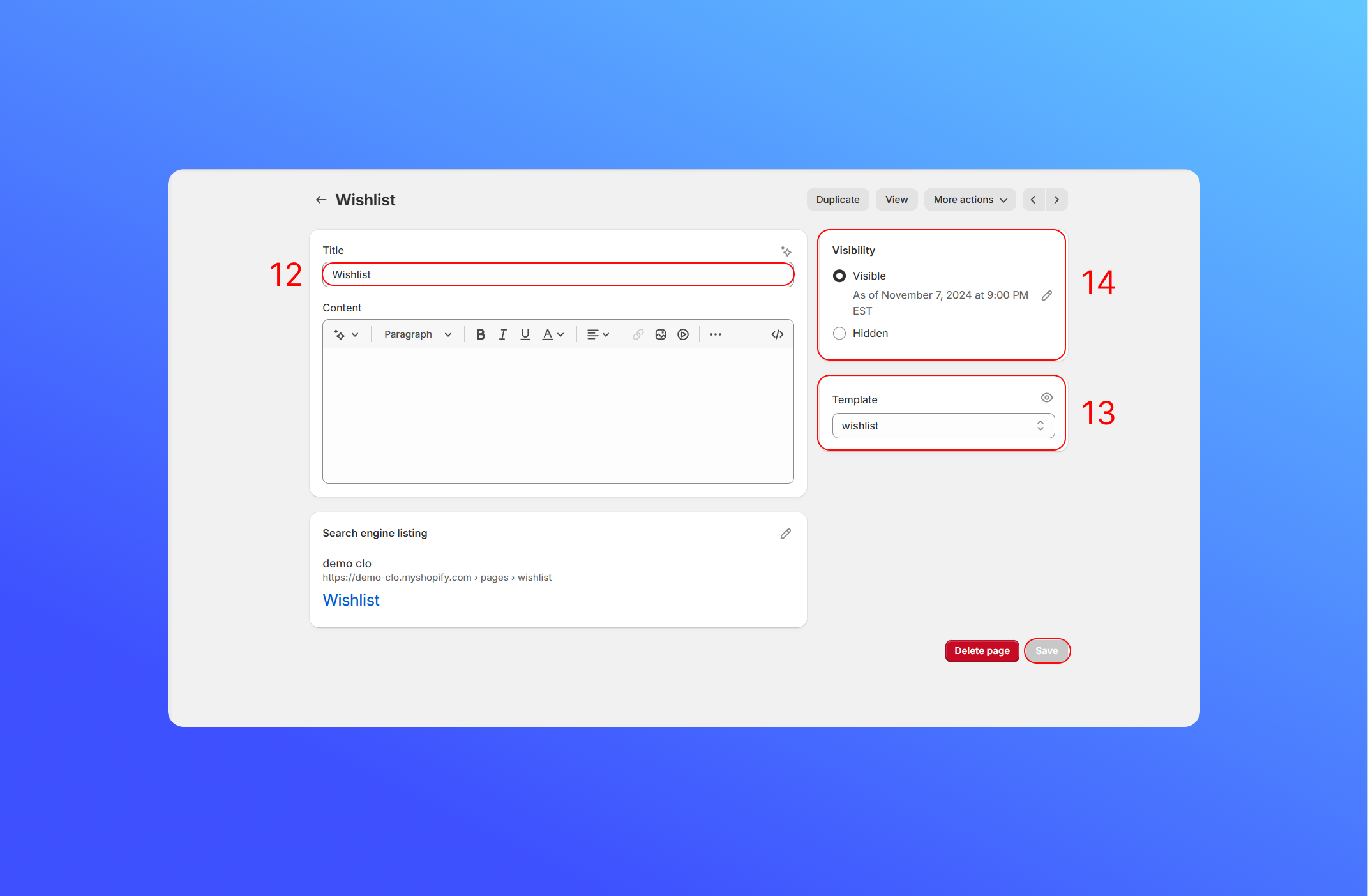 14. Under the Visibility, select the **Visible** for the page. Click **Save**